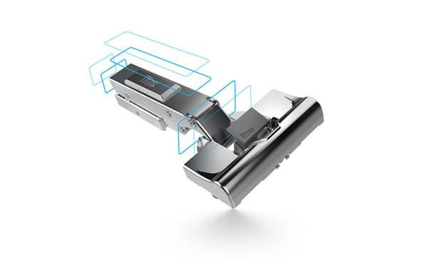 Enables the device to adjust to varying closing speeds. This technology optimises the damper's performance by adapting to the weight and speed of the door or drawer, adjusting the damping force accordingly. As a result, the closing is smooth, progressive, and reliable. This function also reduces the required opening force, meaning less effort to open the door.